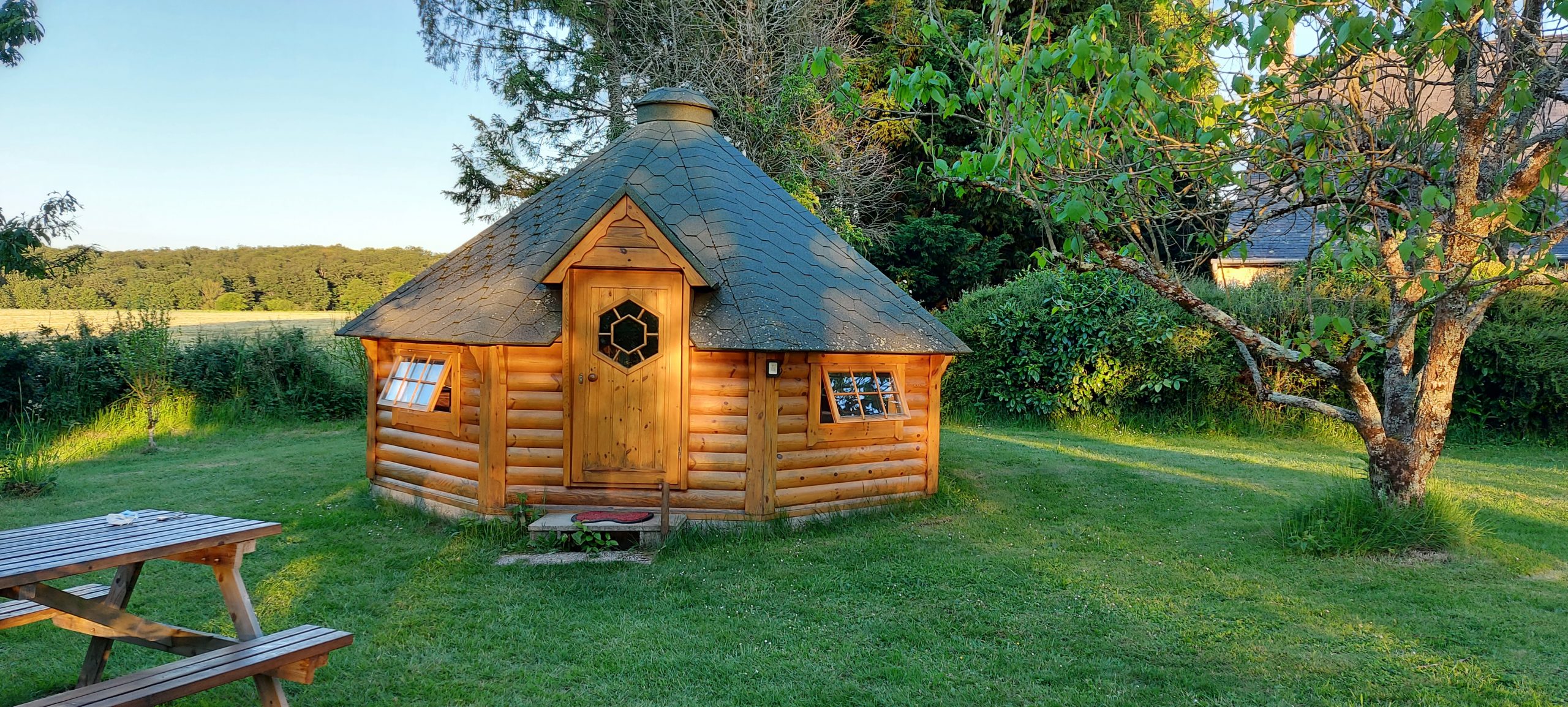 Plus spacieux, il peut accueillir plusieurs personnes. Il convient parfaitement pour un séjour en famille, mais aussi pour un couple souhaitant vivre un moment chaleureux et romantique. Son ambiance bois, son espace confortable et sa proximité avec la nature en font un hébergement atypique très apprécié.